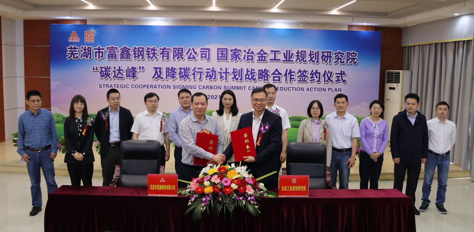 5月21日,蕪湖市富鑫鋼鐵有限公司與國家冶金工業規劃研究院“碳達峰及降碳行動”簽約儀式在富鑫公司隆重舉行。本次簽約儀式活動,旨在國家提出“碳達峰”“碳中和”的目標愿景下,構建公司與冶金工業規劃研究院在減排降碳方面的交流合作平臺,共同探討鋼鐵行業的發展趨勢和未來機遇,分享技術創新和優秀實踐,努力打造富鑫鋼鐵綠色發展的美好未來,為地方經濟建設作出更大貢獻。